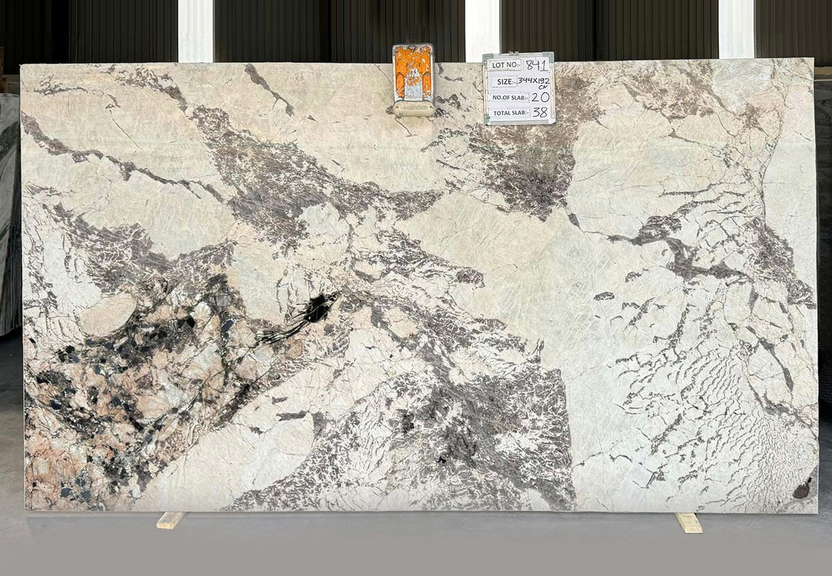 and comes under the exotic granite category. This stone slab features a mix of blue, brown, and white